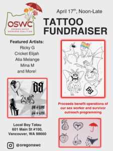 April 17th, Friday Noon-Late – FLASH TATTOO FUNDRAISER @ Local Boy Tatau in Vancouver, WA.
