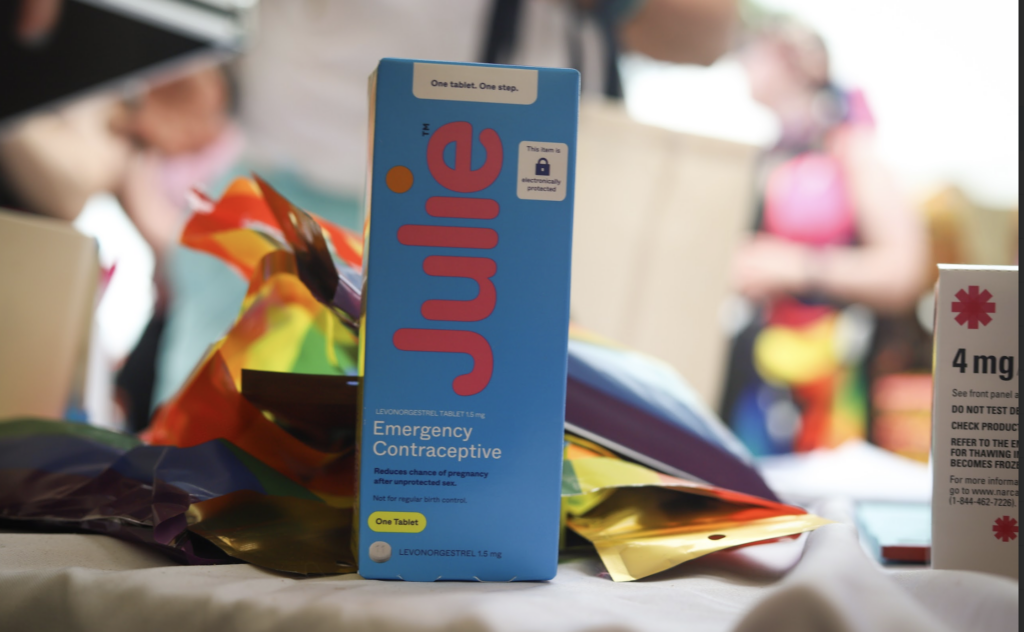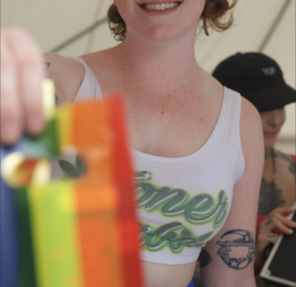 Misty Maven hands out harm redux supplies at Portland Pride 2024.